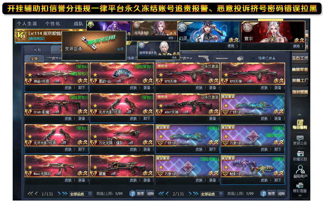 友情提醒:不得使用外挂等第三方软件,违反将会扣除押金或者系统强制退出游戏!