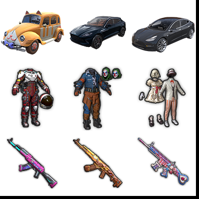 身法号素材紫螳螂小丑★8载具20粉装6特效枪★猪妹★新101★玛莎拉蒂★五爪金龙★特斯拉★萌喵橘座★双人摩托★鬼马...