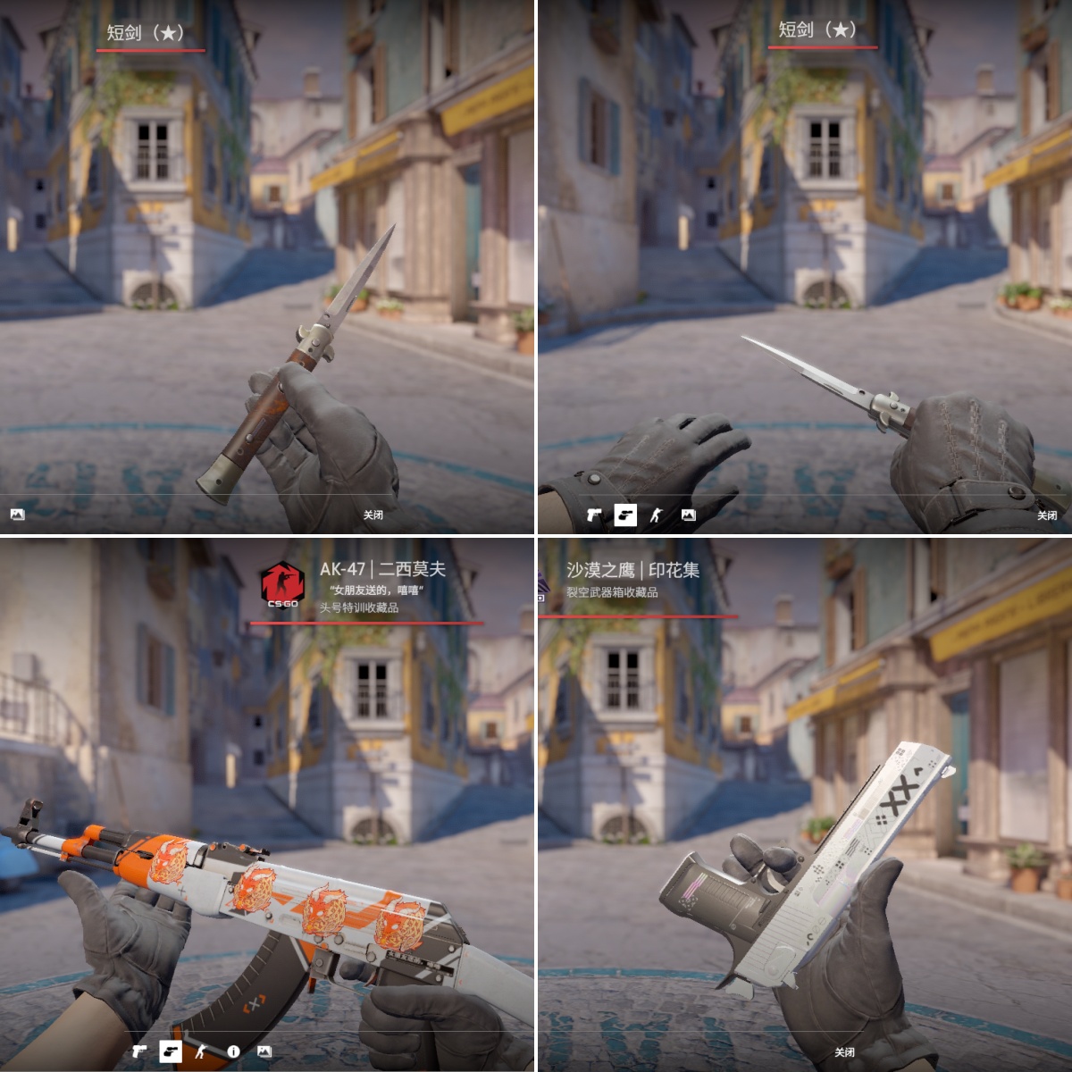 可完美(L12-)★短剑原皮★AK二西莫夫★AK二西莫★印花集沙鹰★A4齿仙★A1破碎★MP9食物链★禁官匹