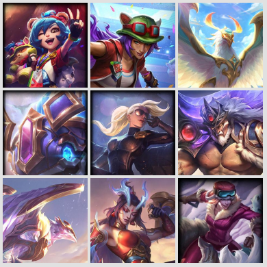 死神500皮神话★哥特萝莉十周年纪念★冠军之刃瑞文★狗年限定★蛇年限定★胜利女神莫甘娜★SKT T1★史诗★泳池派...