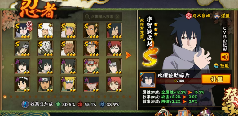 适配系统:安卓 账号类型(腾讯):QQ 战力值:2222 A级忍者数:20 分销起租时长:1 S级忍者数:21