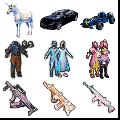 红装木乃伊️雪国幻梦️怪诞乔克️赤蝎幽灵️都市猎人️金鞋️巡查衣️萌神柯基️夏日倾情️12吧特效枪️6个载具