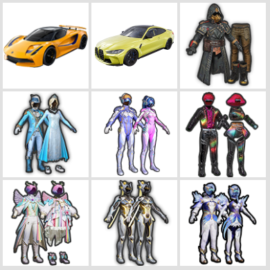 3极木乃伊,AK9极特效枪,雪国幻梦,觉醒螳螂,发光眼罩,绚金战神,都市猎人,金鞋,赤蝎幽灵,天网终结者,追光队服...