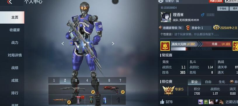 英雄武器数:100 王者武器数:2 段位:枪王 VIP等级:V7 角色数量:15 分销起租时长:2 适配系统:安卓 账号类型(腾讯):QQ