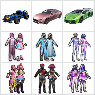 S115██猛男身法素材号-冰雪女王-粉玛莎拉蒂-3载具蓝合金龙骨绿兰博基尼5特效枪12套粉装-洛白勺歌姬-梦幻火...