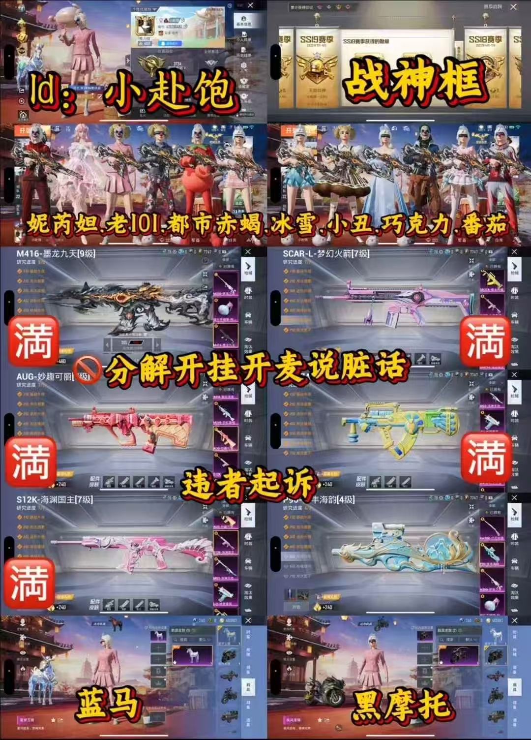 适配系统:苹果 红装数量:1 账号类型(腾讯):QQ 分销起租时长:1 载具数量:2 粉色时装数:28 套装数量:199 特效枪数量:20 枪皮数量:98