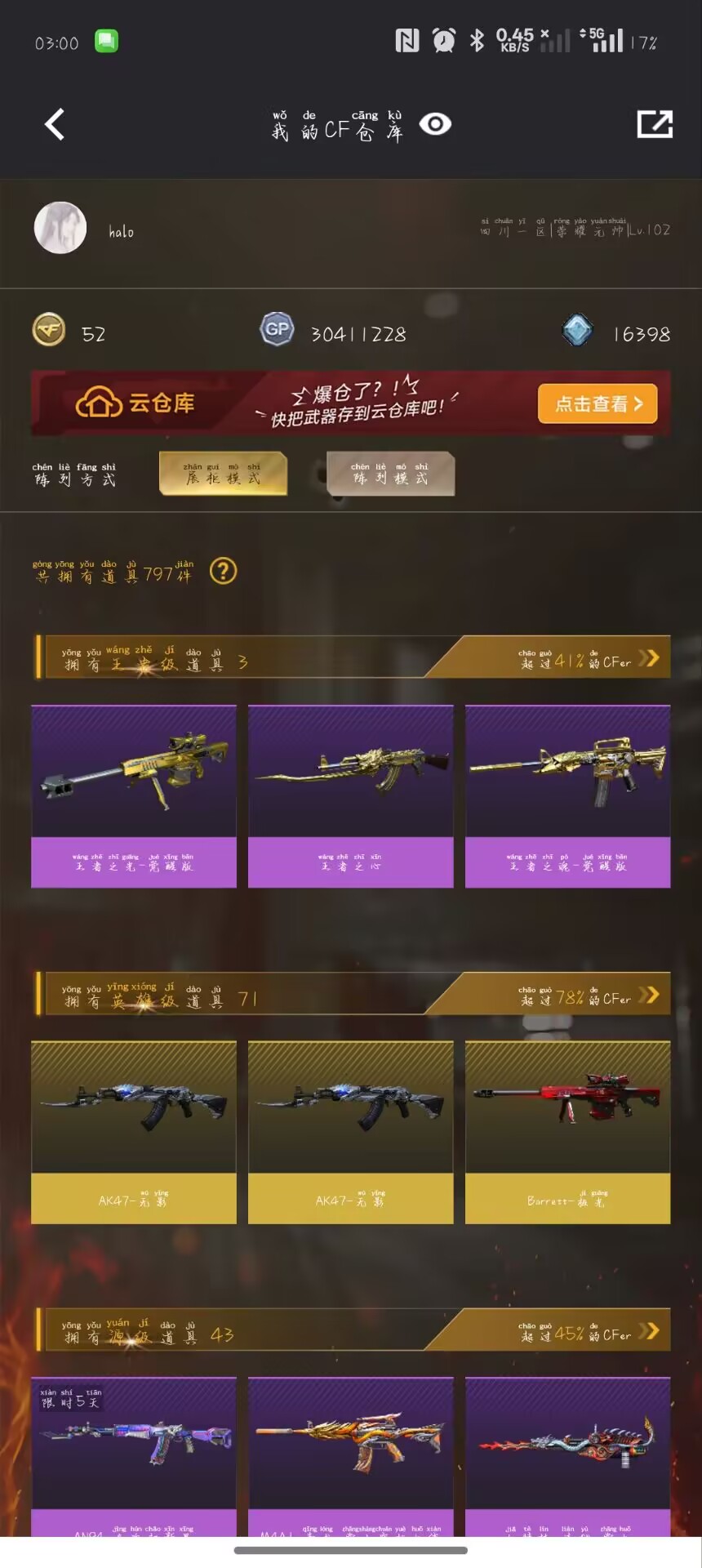 英雄武器数:62 王者武器数:3 枪王排位等级:荣耀之巅 账号类型:爆破号 段位积分:4033 到时不下线:1 VIP等级:VIP2 排位赛:允许