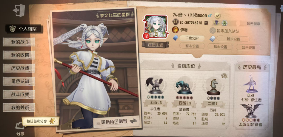 适配系统:安卓 归宿分:100288 时装数量:191 求生者段位:五阶 监管者段位:四阶 分销起租时长:1