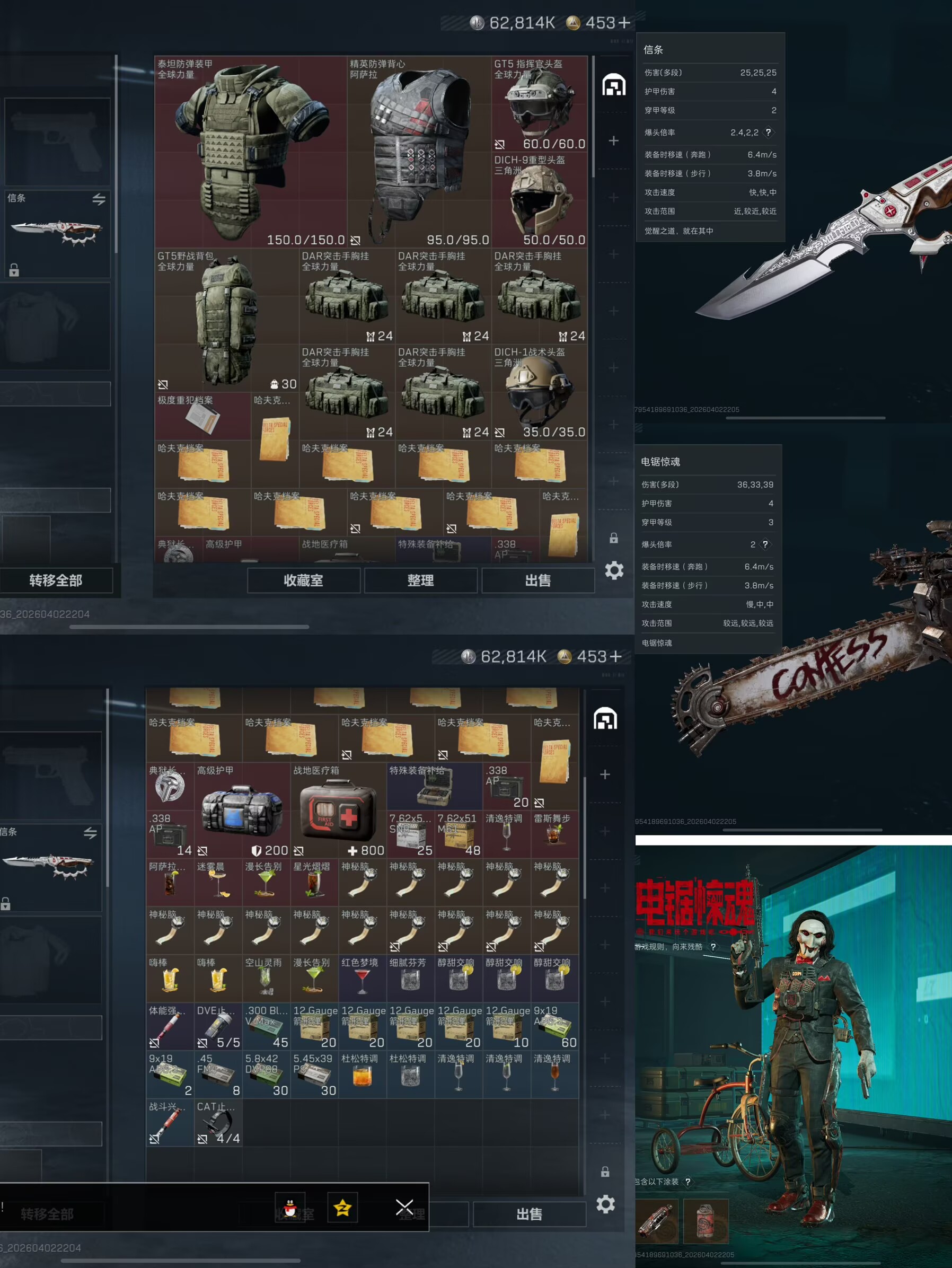 **仓库★6千万纯币★红狼小丑★绝版信条-电锯全套捆绑★若用a大六套低消4000万纯币★爽玩6体4负!冻结加粉丝群...